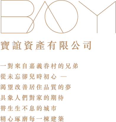 誠信為本,客戶滿意度為基準,正是寶誼的初衷。成立自2012年,集結建築業充滿熱情、理念相同的菁英人士,共同攜手打拼,專業分工,各司其職,企業組織以財務、工務、業務、開發四大部門組成,團隊匯聚土地開發、設計規劃、營建管理、行銷企劃及財會管理等各領域專業人才,融合豐富實務經驗,成就實力堅強的建築團隊。